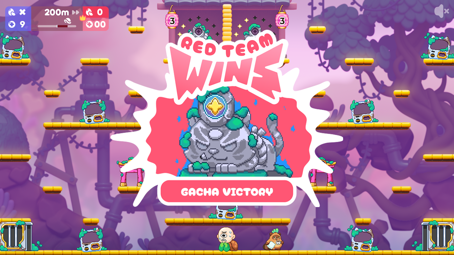 Bring Gacha Balls to a Torii Gate, which transforms you into a Buff Moki capable of knocking out opponents.