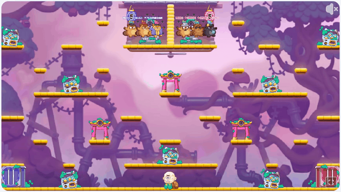 Pixel Assets: We had sprites of Mokis who could idle and jump, but we needed an attack in the form of Buff Moki. We also needed a multitude of separate Moki Accessories, along with interactive way points throughout the map. Since these were Pixel assets, they also required sprite sheets.