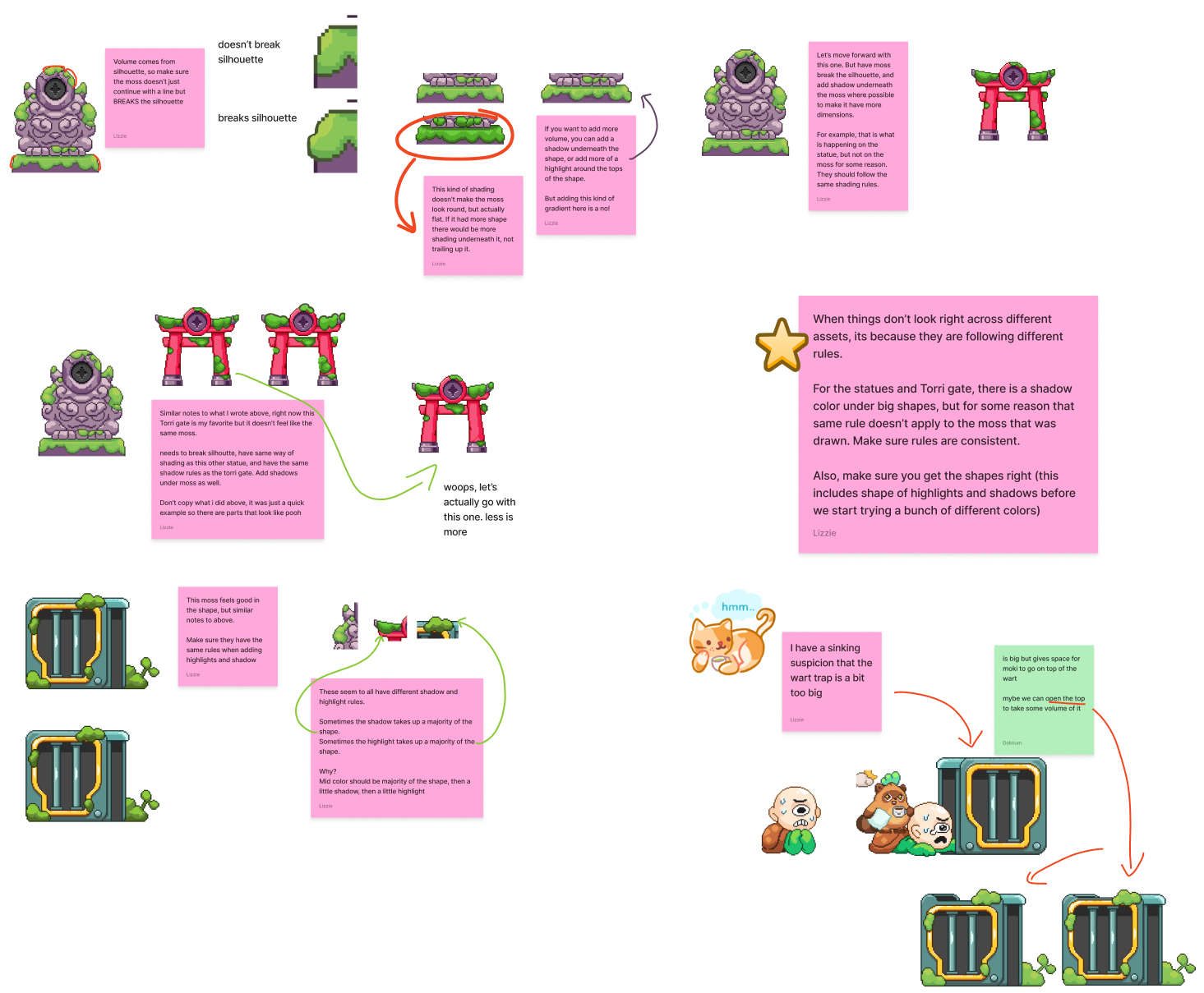 While researching other platform games, I found that none of them really excited me visually. Additionally, we had a staffing constraint: we didn’t have many pixel artists. The team before me relied mostly on a contract artist, Pixel Cat, with the rest of the team doing clean-up on pixel assets.