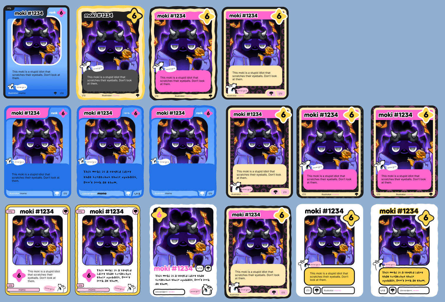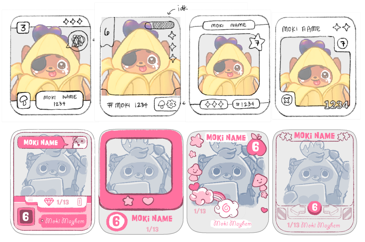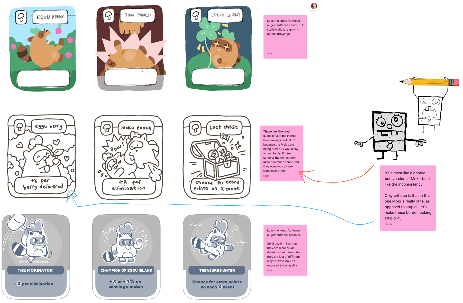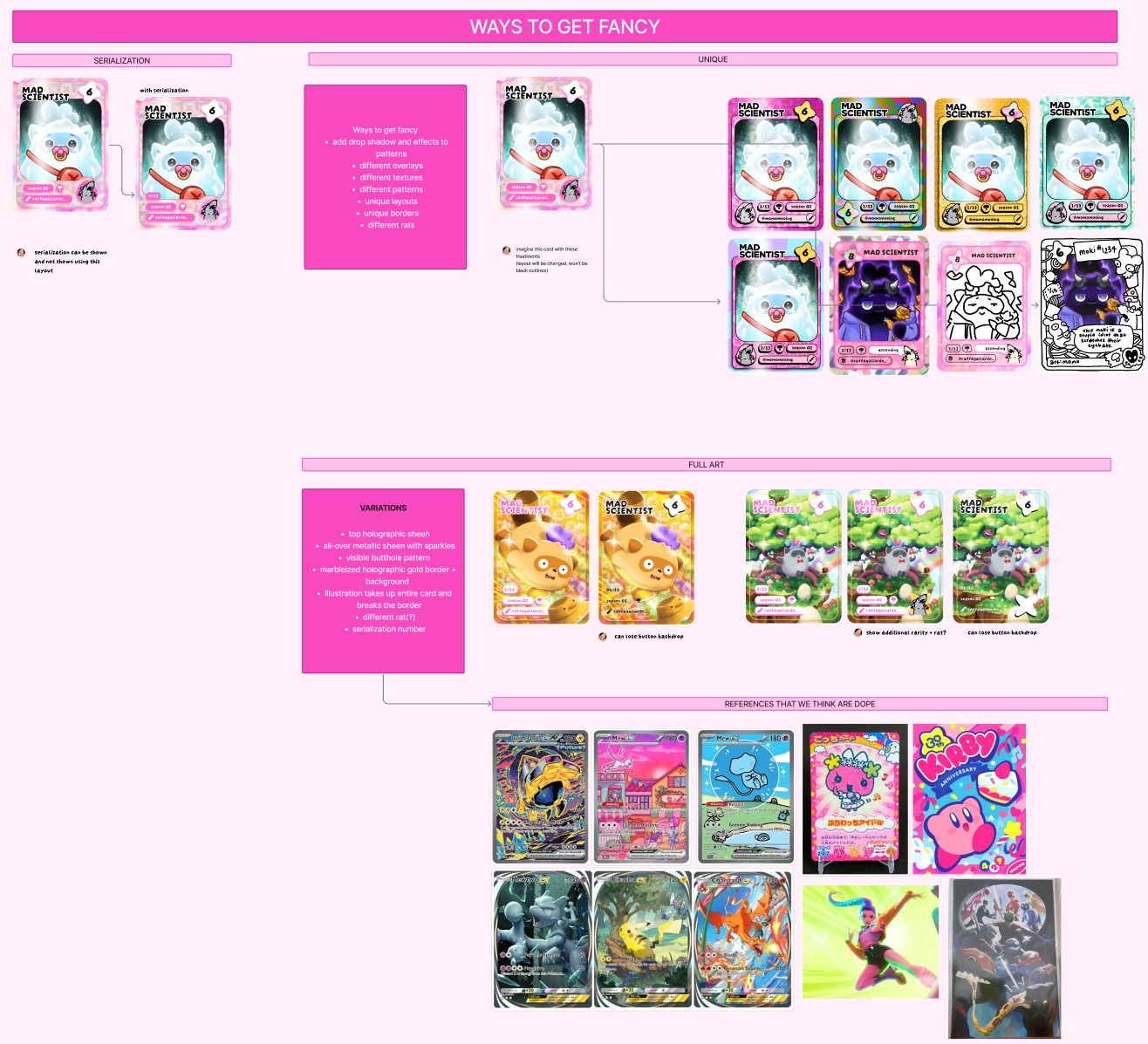 We took a lot of inspiration from "Doodle Bob" from SpongeBob and Pokémon’s "Masaki Promo Cards.” This was our opportunity to differentiate these from the regular deck. They were designed to be playful, distinct, and a moment of pure creative delight for the player.